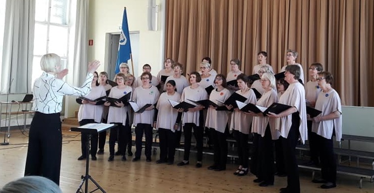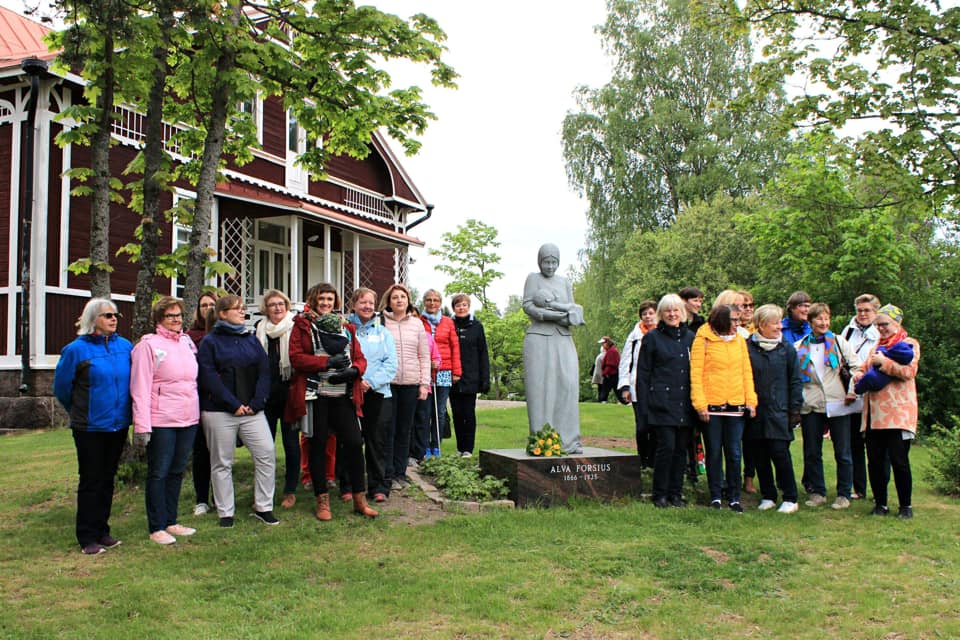 Alva Forsius födelsedag den 24.5. När kören valde att uppkalla kören efter Alva Forsius bestämdes samtidigt att kören uppvaktar Alva med sång vid statyn på hennes födelsedag. Detta var alltså första gången. Vädret var grått och ruskigt men det regnade inte. Till allas stora glädje kom även Amanda och lilla Atlas med. Detta gjorde säkert att sångerna lät bättre än om vi sjungit utan ledare. En liten skara hade trots vädret samlats och för att lyssna på vår minikonsert. Kaffet vi blev bjudna på värmde skönt.