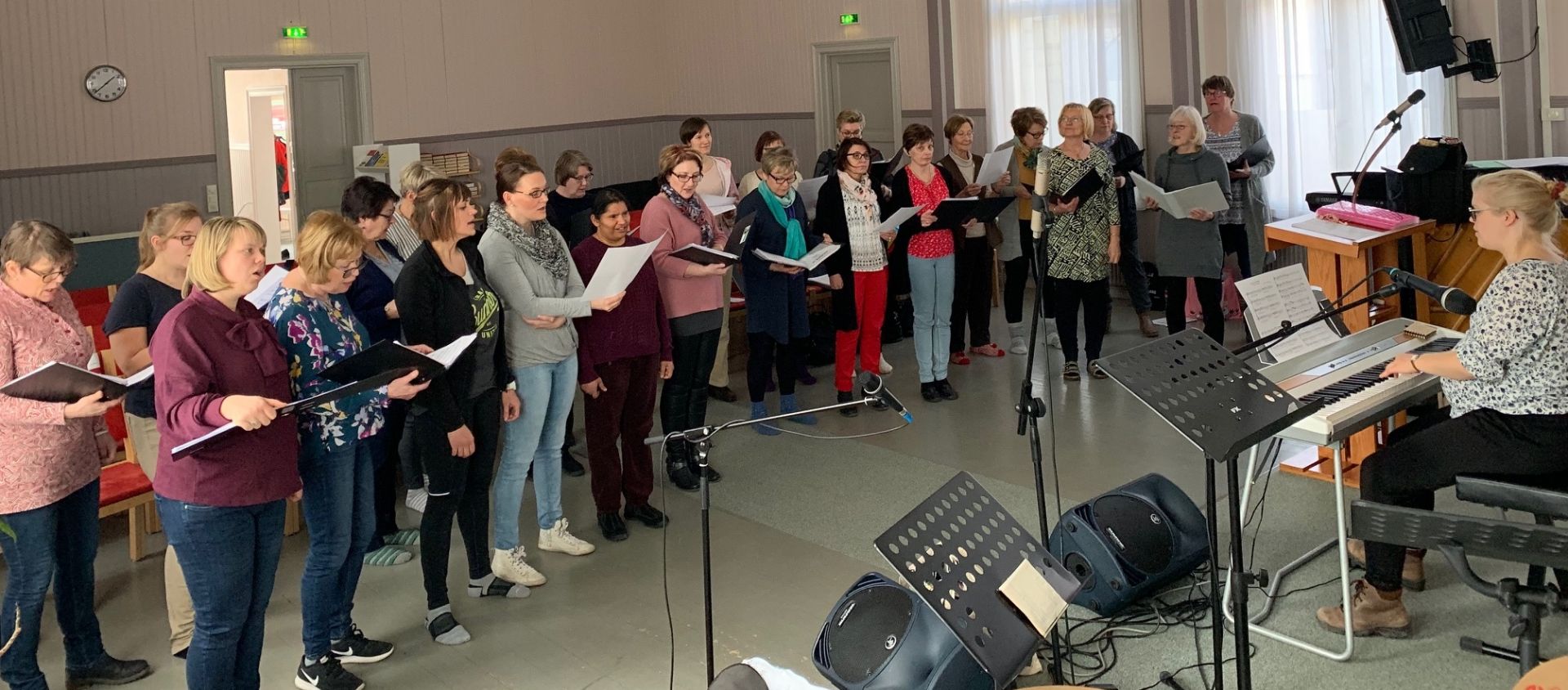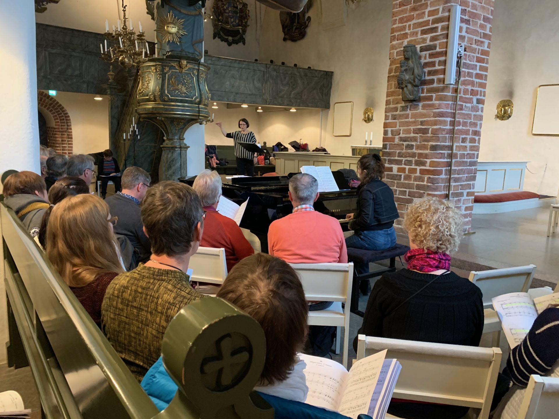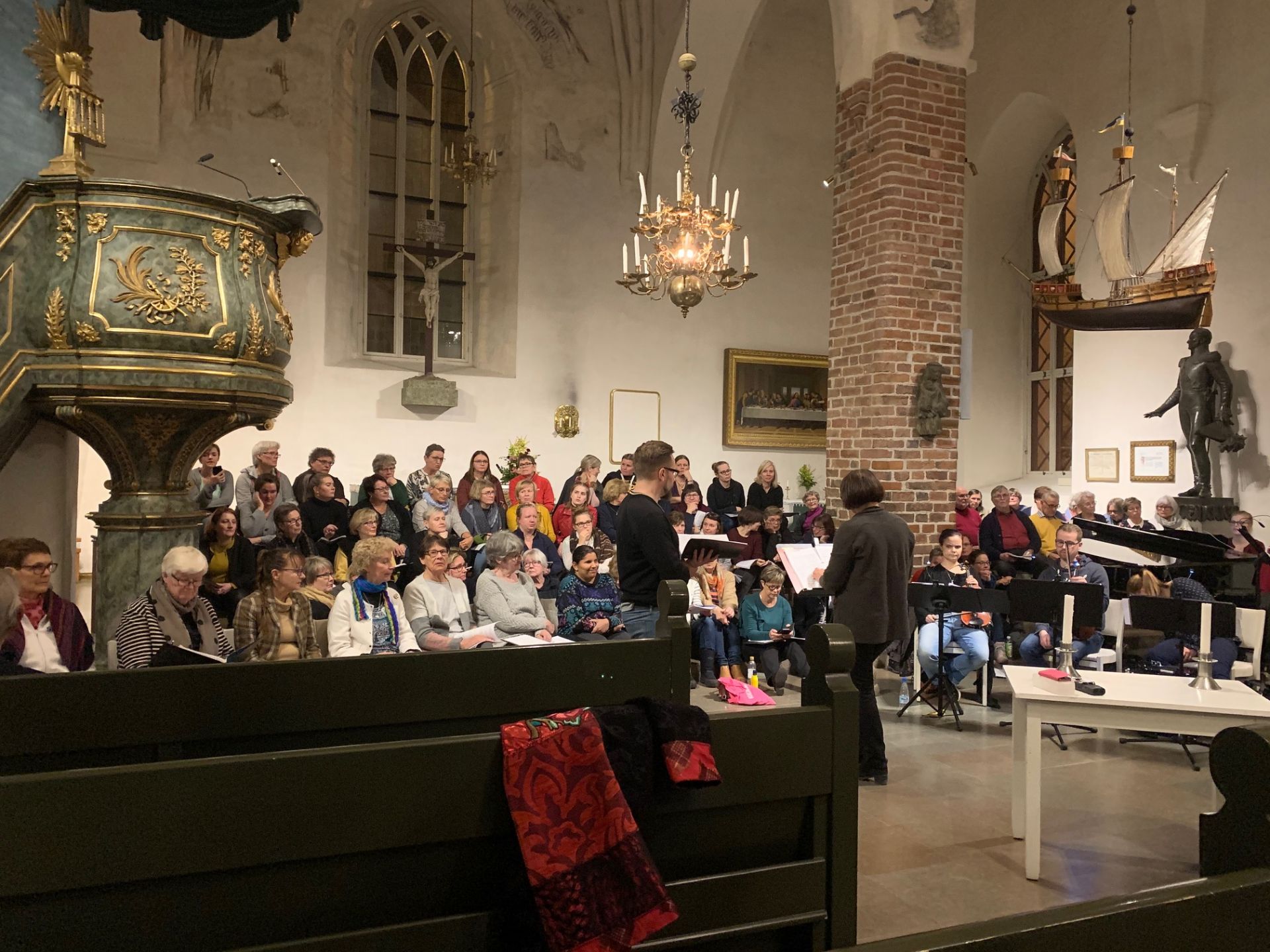 Första Diligam te övningen i Borgå Domkyrka hölls den 26.10. Vi hade haft ett stort antal samövningar men nu var det första gången som vi övade på plats i kyrkan. Alla körer fanns naturligtvis på plats. Mia Makaroff ledde kören och Nina Fogelberg ackompanjerade. BSMFs styrelse hade ordnat med kaffe och kex till pausen.