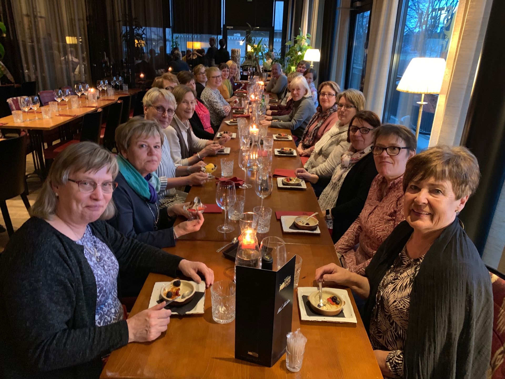 Kördag i Missionskyrkan 30.3. Repertoaren för jubileumskonserten finslipades. Övning ger ju alltid färdighet sägs det och visst gick det bättre varje gång vi sjöng sångerna. Dessutom visste vi att det vankades god mat efter övningen. Vi hade planerat en sits efter övning och största delen av koristerna tågade iväg till Rafaels efter övningen och intog en trerätters måltid. Det var vi värda.