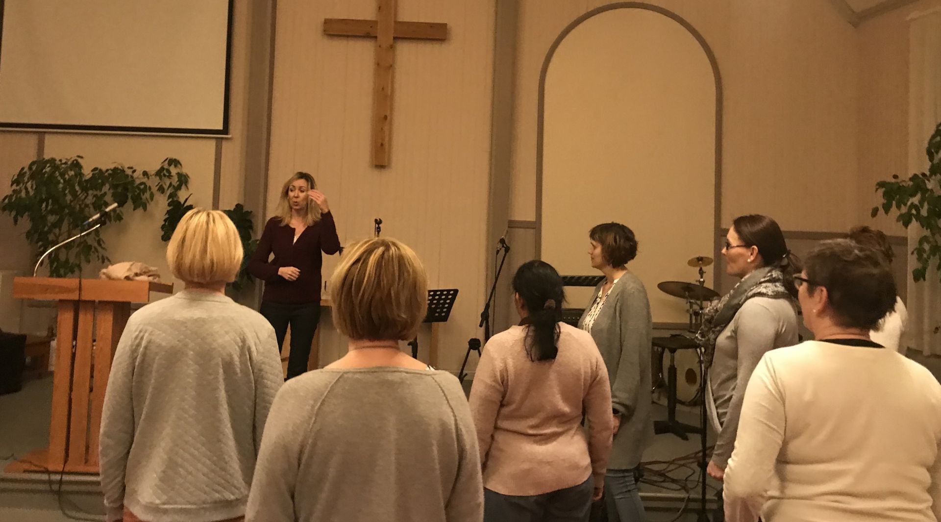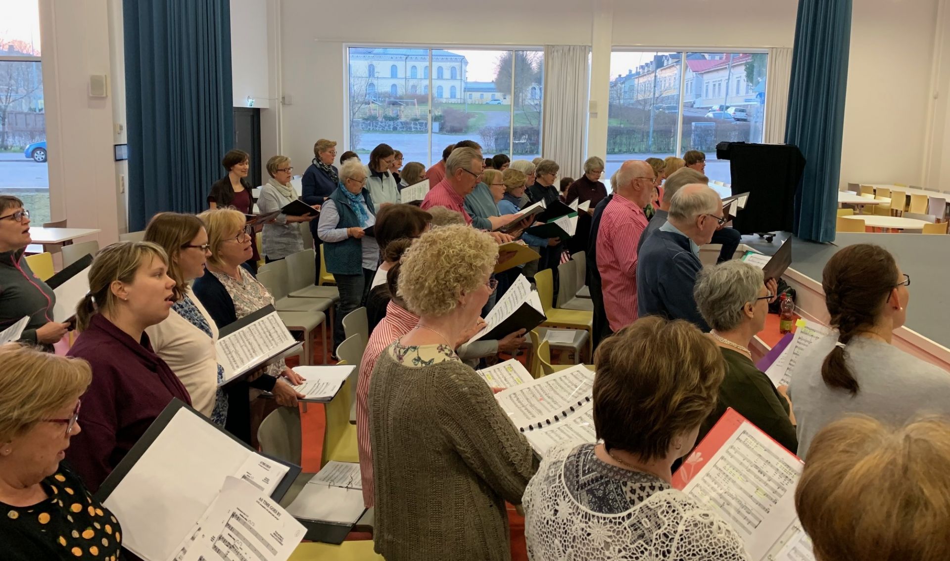 Genrepet för mässan hölls onsdag 6.11. Bandet som bestod av Lotta Ahlbeck, violin, Martina Brunell, ackordeon, Mauriz Brunell, violin, Jesper Eklund, trummor, Margarita Eklund, bas samt Amanda Henriksson, piano fanns på plats. Vilket lyft det blev! Jussi Merikanto som var solist fick vi också nu stifta bekanskap med. Och för första gången fick vi höra Pater noster, Jussis solosång. Nu fanns även bänkarna på plats så vi kunde testa hur vi skulle stå så att alla ryms och alla ser dirigenten, hur vi skulle gå in och hur vi skulle gå ut. Allt gick inte ännu helt bra med det blev hela tiden bättre.